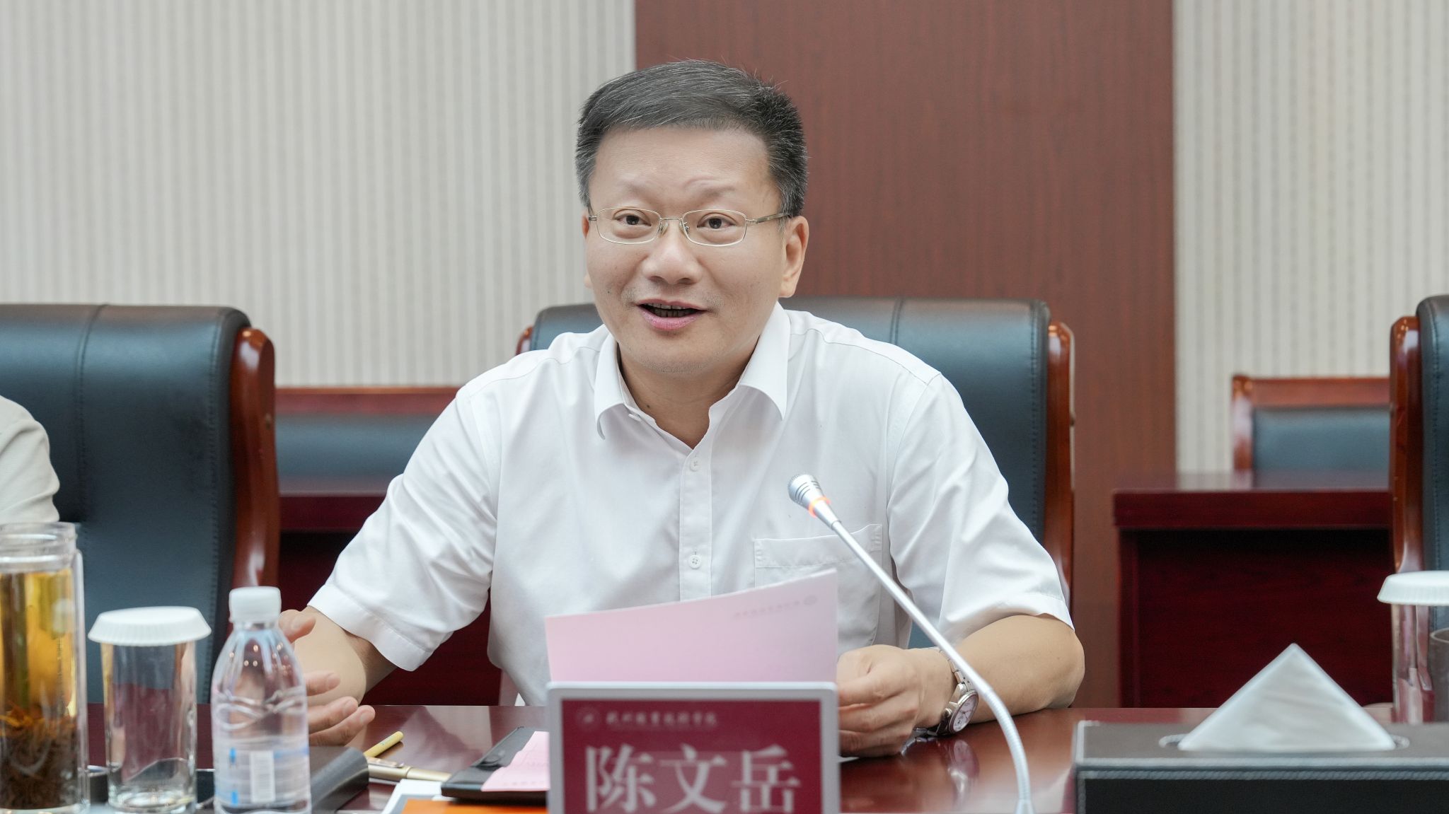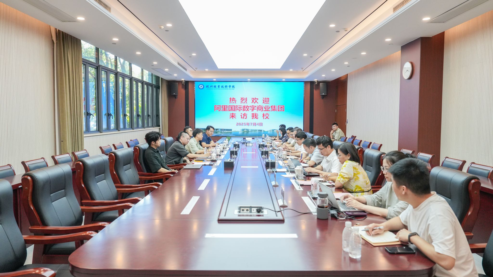 陈文岳代表学校对阿里巴巴国际数字商业集团一行的到来表示热烈欢迎,并详细介绍了学校的发展情况和办学特色。他指出,学校期待与阿里巴巴携手并肩,秉持“科技向善,教育无界”的理念,共育卓越AI新质生产力人才,共同开辟校企协同育人新路径。陈文岳强调,学校将成立专门团队,与阿里巴巴国际数字商业集团紧密协同,共同谋划、务实推进,全力推动项目方案落实落地。