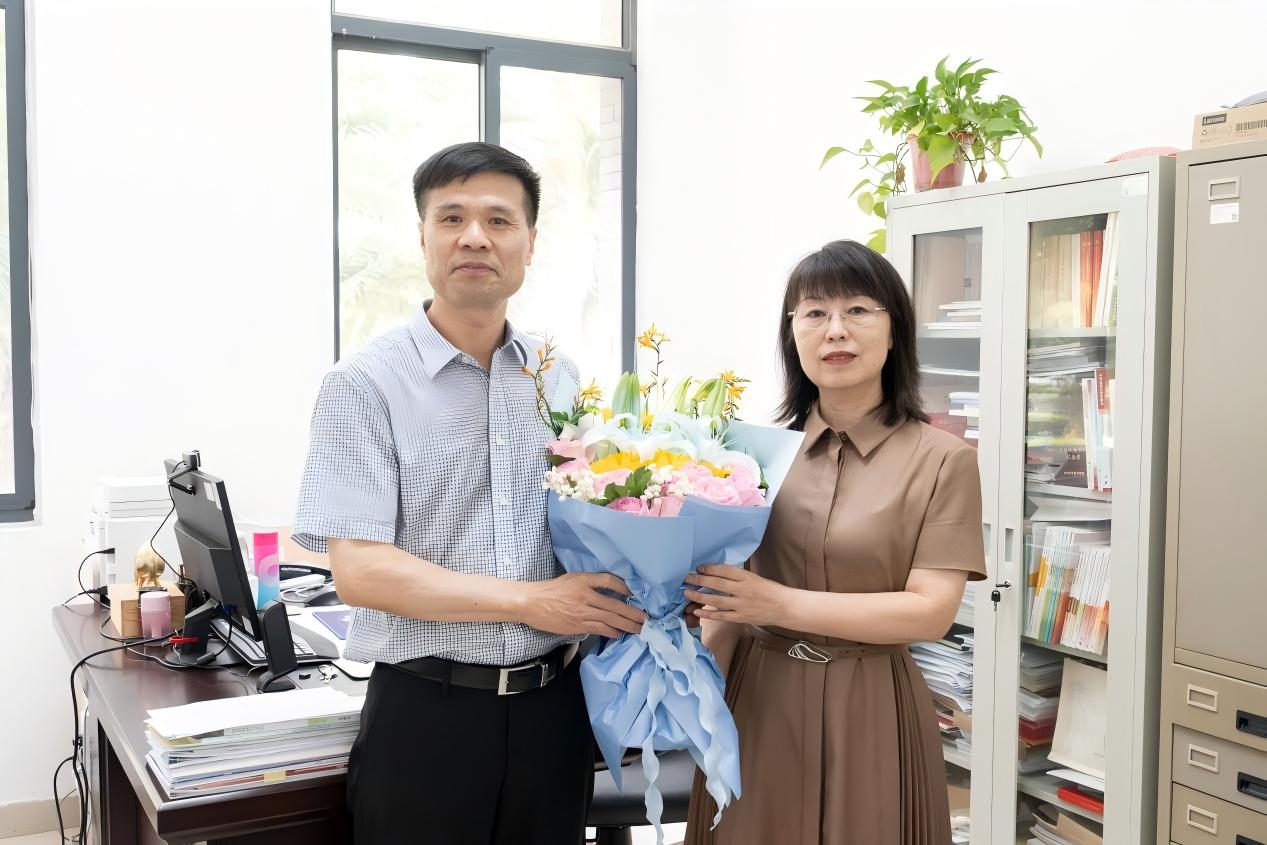 9月19日上午,校长黄兆信前往商贸旅游学院和马克思主义学院,亲切慰问国家级高层次人才袁江军教授和邹宏秋教授,向他们致以诚挚的问候和崇高的敬意,并送上鲜花。办公室和人事处主要负责人陪同慰问。